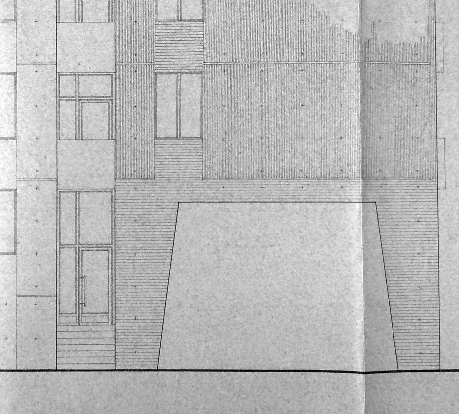 A Műszaki Tervtár anyagában található egy 1:50-es vázlatos homlokzati zsalutábla-kiosztási terv. Ebből egy részlet:
