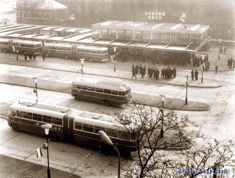 Az autóbuszközlekedés tulajdonképpen csak a felszabadulás után fejlődött ki. 1945-ben csupán két – roncsokból összeállított – autóbusz bonyolította le a forgalmat. A MÁVAUT kezelésében rohamosan fejlődött a helyi és vidéki autóbuszhálózat. A Lenin-híd [ma Baross híd] nádorvárosi hídfője mellett – a vasútállomástól délre – új, korszerű autóbusz pályaudvar létesült a vidéki járatok fogadására és indulására. [1]