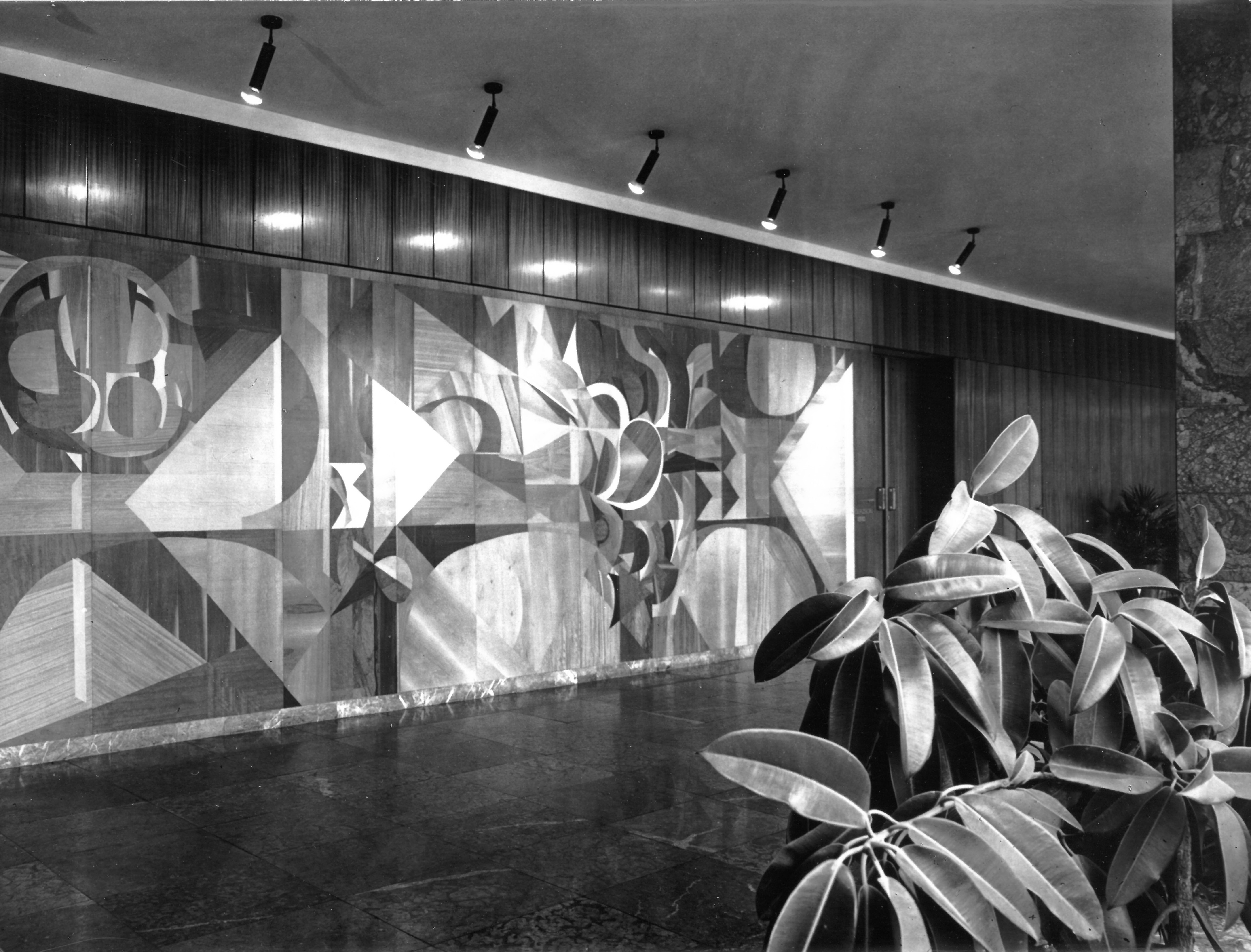 fatay-hagyatek-08 2019. január 10. Return to: Városközponti irodaház (megyeháza)Full resolution (5596 × 4260) Image navigation Previous Image Next Image Gerzson Pál fa intarziája a Megyei Tanács előcsarnokában. (forrás: MÉ 1973/1)