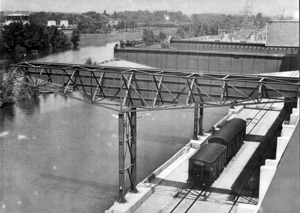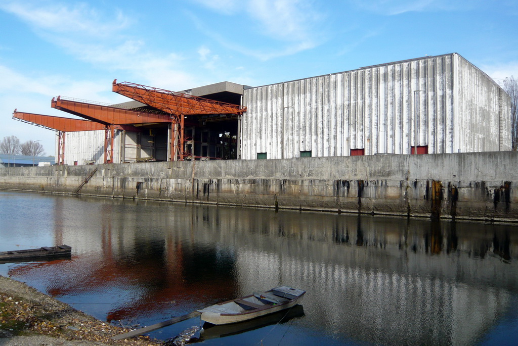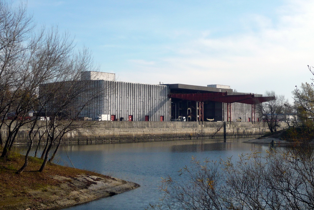 A vízi kapcsolat mindenesetre csak elvi lehetőség, mert az Iparcsatorna, amelyet eredetileg az Ágyúgyár termékeinek szállítására kezdtek el építeni az I. világháború előtt, soha nem készült el, soha nem használták ipari hajózásra. (Pedig a közraktár legvagányabb építészeti elemei éppen a csatorna fölé nyúló, rikító vörös acél darupályák — soha nem használták ezeket.)
