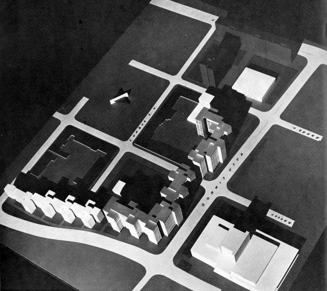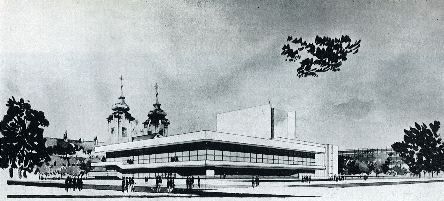 Ám még nem tartunk ott. Újabb kísérlet volt a szocreál hajnalán. 1952-ben a KÖZTI műtermeiben Gádoros Lajos vezetésével készült újabb terv a színházra. A helyszín már megegyezett a megvalósult színházéval. Winkler Gábor így ír:
