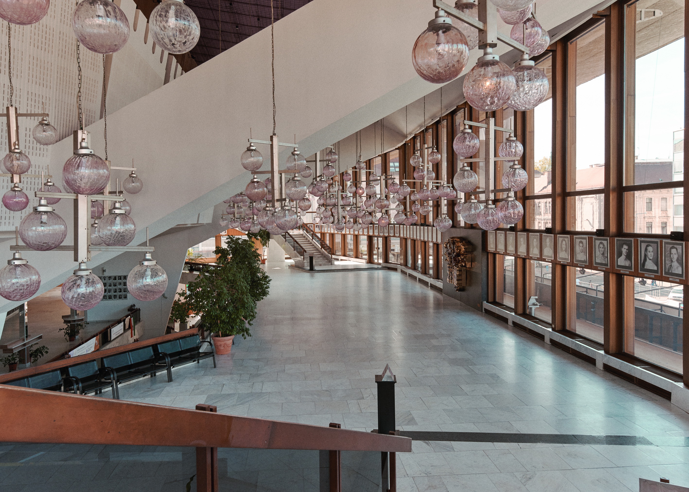 DSC_8053 2018. december 14. Return to: Győri Nemzeti SzínházFull resolution (2835 × 2025) Image navigation Previous Image Next Image A reprezentatív csillárszint a hatalmas, kábeleket tartó, ferde vasbetongerendákkal. (© Modern Győr, Győr-Moson-Sopron Megyei Építész Kamara, fotó: Schmal Fülöp)