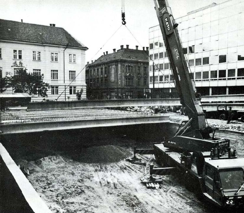 Nemzeti Színház 2013. június 16. Return to: Győri Nemzeti SzínházFull resolution (827 × 723) Image navigation Previous Image Next Image Autódaru emeli be a 16 m fesztávolságú előregyártott gerendákat a színház fedett parkolójának födémébe. (forrás: GYŐRITERV kiadvány)
