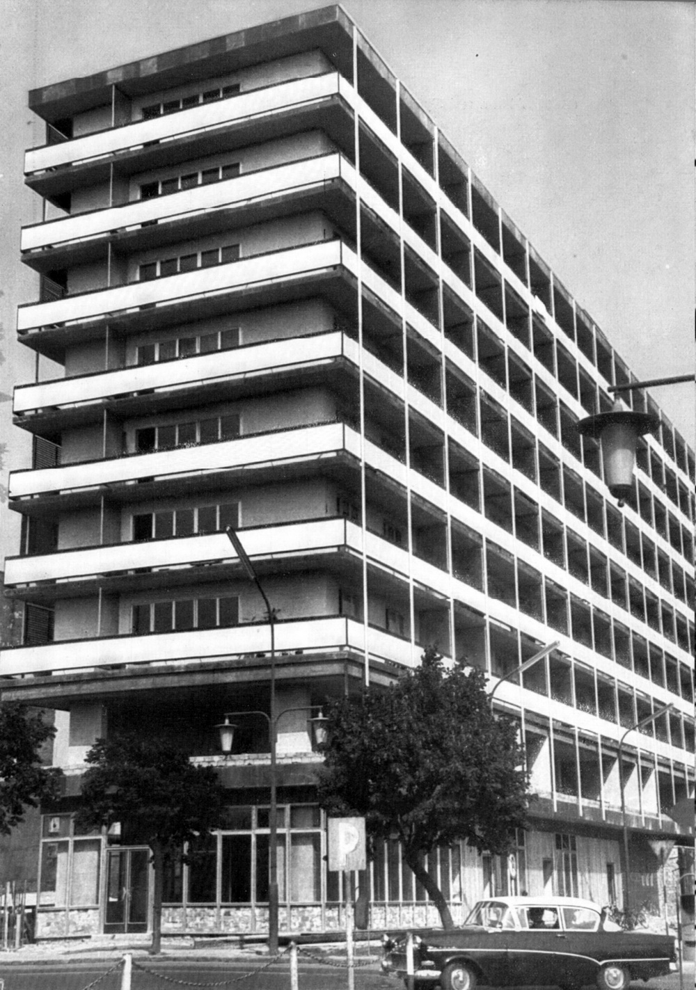 Nyolcemeletes lakóház 2013. július 21. Return to: A “nyolcemeletes” lakóházFull resolution (1000 × 1423) Image navigation Previous Image Next Image Befejezés előtt. A két alsó szinten irodák, felettük 91 lakás. (képeskönyv, 1965)