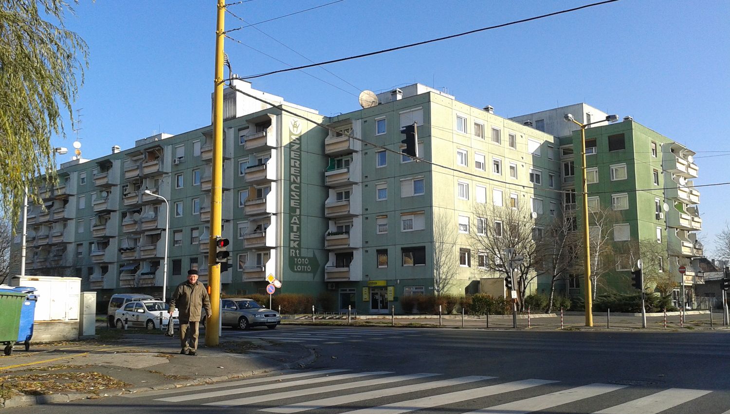 Ez a paneles épület 1987-ben épült Hoppál Dezső tervei szerint. Az ötszintes ház a RÁBA gyárban dolgozó kínai vendégmunkások munkásszállásaként szolgált, a rendszerváltás óta lakások vannak benne. A győriek ezért “kínai ház”-ként emlegetik. Lépcsőházankénti felvonóval készült a GYÁÉV és a győri Házgyár 1974-re kifejlesztett új, opcionálisan színezhető panelcsaládjából, amelyből Marcalváros is épült.