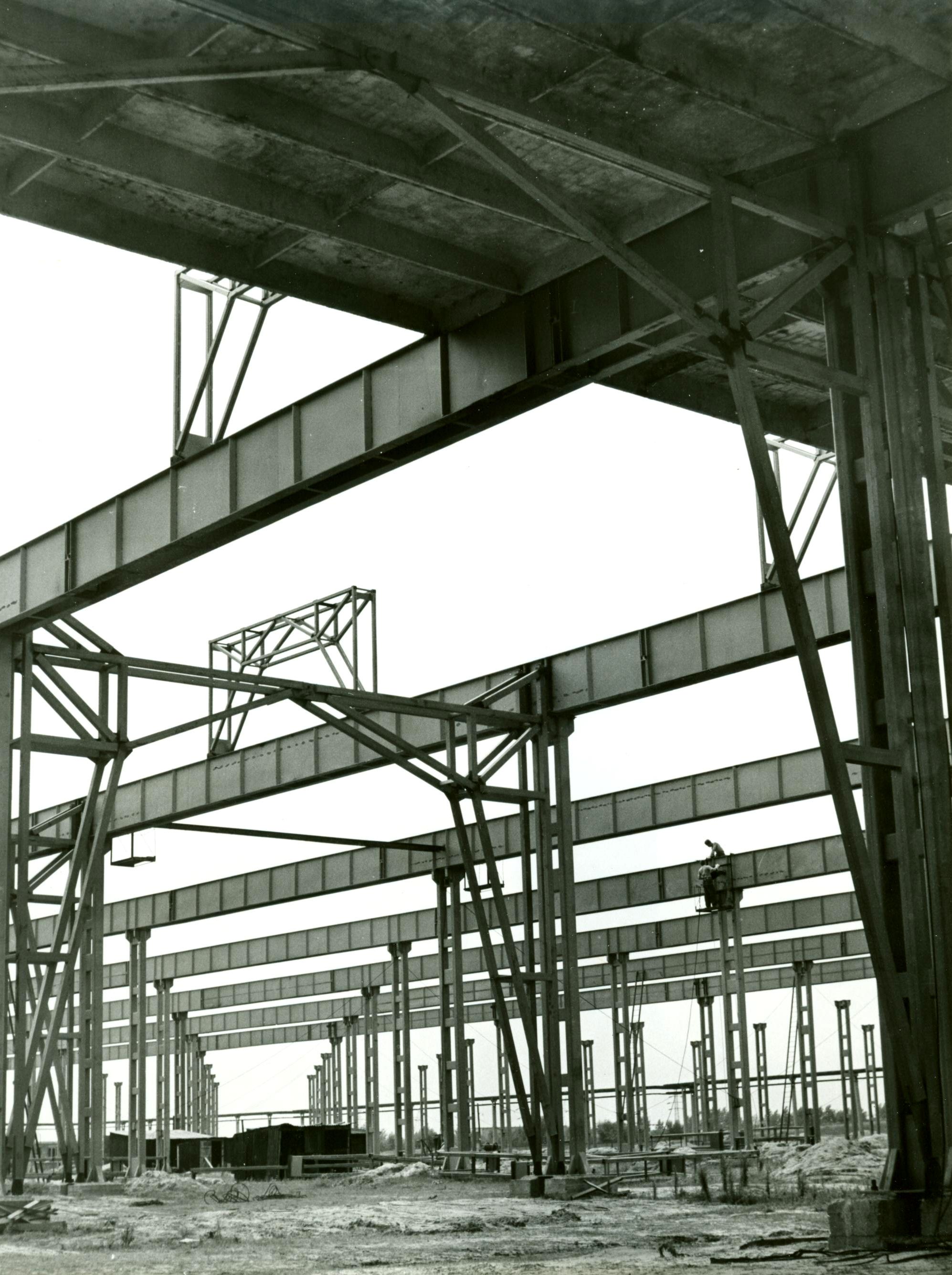 RÁBA csarnokok 2014. január 7. Return to: RÁBA MVG csarnokok (1960-1980)Full resolution (1994 × 2670) Image navigation Previous Image Next Image Épült a 28000 m2-es csarnok. (forrás: GYŐRITERV kiadvány)
