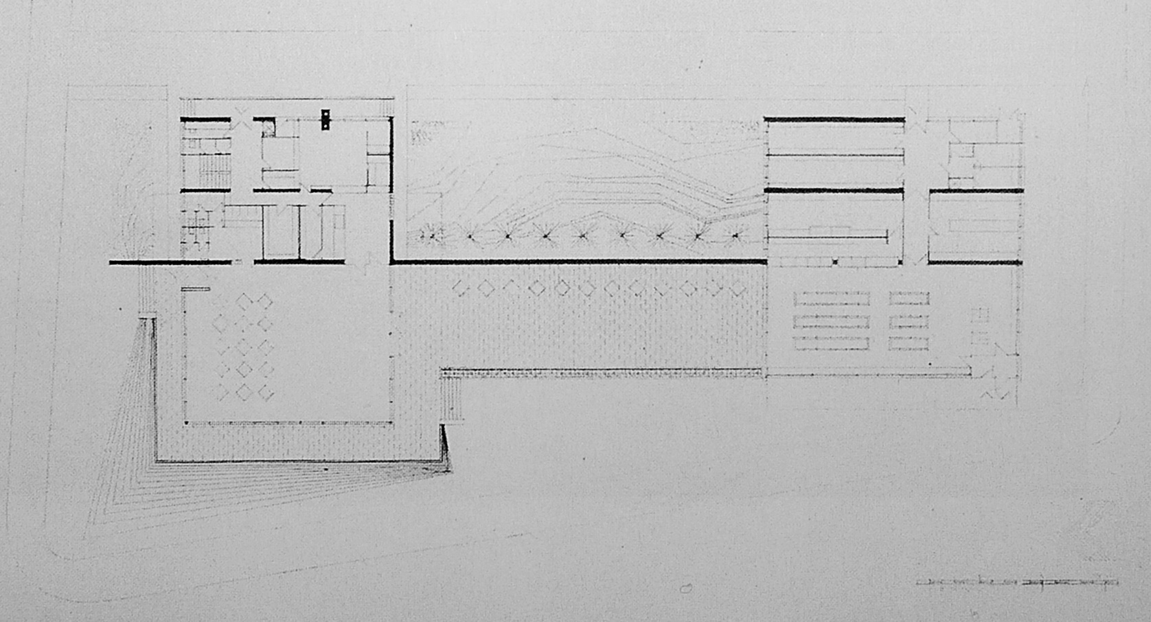 A tömör külső falazatok 30 cm-es üreges elemekből, az átlátszó felületek acélvázas üvegfalakkal készültek, itt acéloszlopok tartják a födémet. Mindkét részt központi fűtéssel látták el, az étterem mesterséges szellőzéssel is rendelkezett.