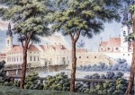 Bár itt az osztrák csapatok bevonulását láthatjuk, de a reformkor és a kereskedelem fellendülése elhozta a városnak a nyugodtabb és alapvetően békés fejlődés korszakát, és híd környezete is átalakult. Az egykori védműszigetről a 19. század elején elbontották a falakat, és itt valósul meg a klasszicizmus egyetlen jelentősebb épülete Győrött, a kőszínház. Ez végső formáját 1839-ben kapja Fruhmann Antal tervei alapján. Így ábrázolták az alábbi képen is, ahol a sétatérré, pihenő hellyé átalakuló sziget idilli képét láthatjuk, természetesen a Bécsi kapuhoz vezető híddal együtt, amelyet ezután leginkább Sétatéri hídnak neveznek a győriek.