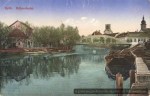 Az alábbi képen nagyon jól látszanak a két híd íves szerkezetei, amelyek új elemmel gazdagították a városképet. Középütt látjuk a “Kioszk” épületét is, amely a 20. század elején épült a szigeten, a győri társasági élet központja volt. A régi színházépületet helye (bal oldal) ekkorra már üres, lebontották.