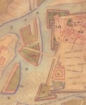 A híd akkor vált “kettőssé”, amikor 17. század közepén egy újabb nagyszabású török támadástól tartva, a várat kiegészítették azokkal a külső erődítményekkel, amelyek megépítését már a 16. században is tervezték. Több mint húsz mesterséges sziget épült külső védműként, amelyek úgy vették körül a várat, mint a sündisznót a tüskéi. Ezek egyike a mai Radó-sziget is, amelyen át a bécsi utat vezették, ahogyan az alábbi metszeten is látható. (Az erődítés egyébként annyira jól sikerült, hogy a török felmérve saját és a vár erejét, egyszerűen elment mellette tovább, Bécs felé.)