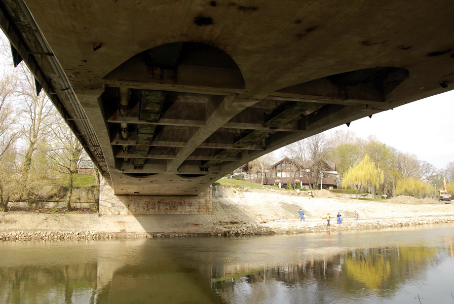 A nagyobbik, kéttámaszú szerkezet eredetileg Gerber-csuklókkal készült. A két partról három-három darab szekrényszerkezetű vasbetontartó nyúlik ki konzolosan, amelyre a középső üreges rész ráhelyezték. A szerkezet kedvező erőjátéka tette lehetővé a híd könnyed, elegáns megjelenését. Érdekesség, hogy a Gerber-csuklókat 1985-ben összefogták, megszüntették.