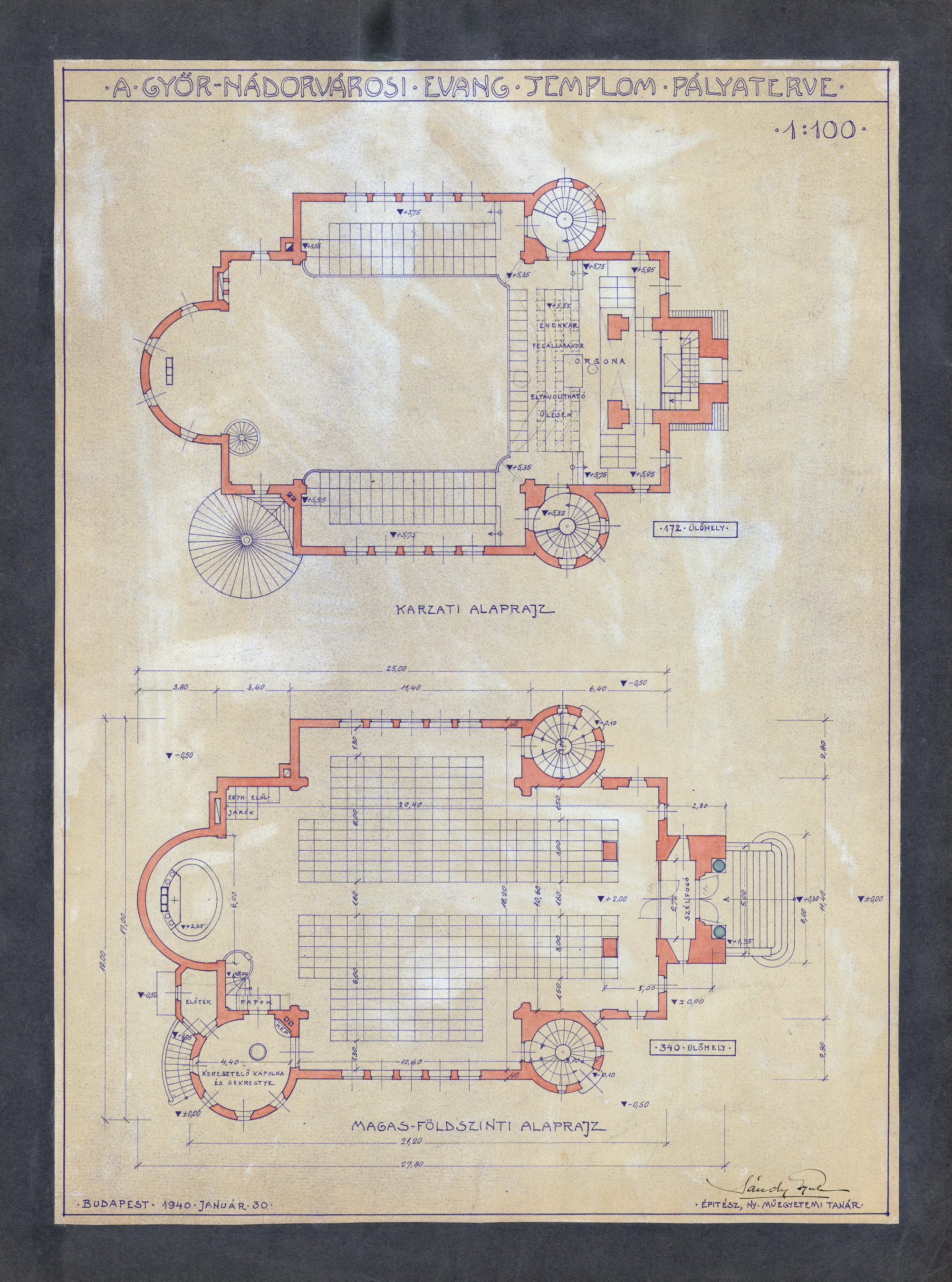 Győr-Nádorvárosi Evangélikus Templom, tervpályázatok 2016. március 5. Return to: Nádorvárosi evangélikus templomFull resolution (2003 × 2696) Image navigation Previous Image Next Image A Győr-Nádorvárosi Evangélikus templom pályaterve, alaprajzok. Sándy Gyula, 1940. (forrás: © Ráth Mátyás Evangélikus Gyűjtemény, Győr)