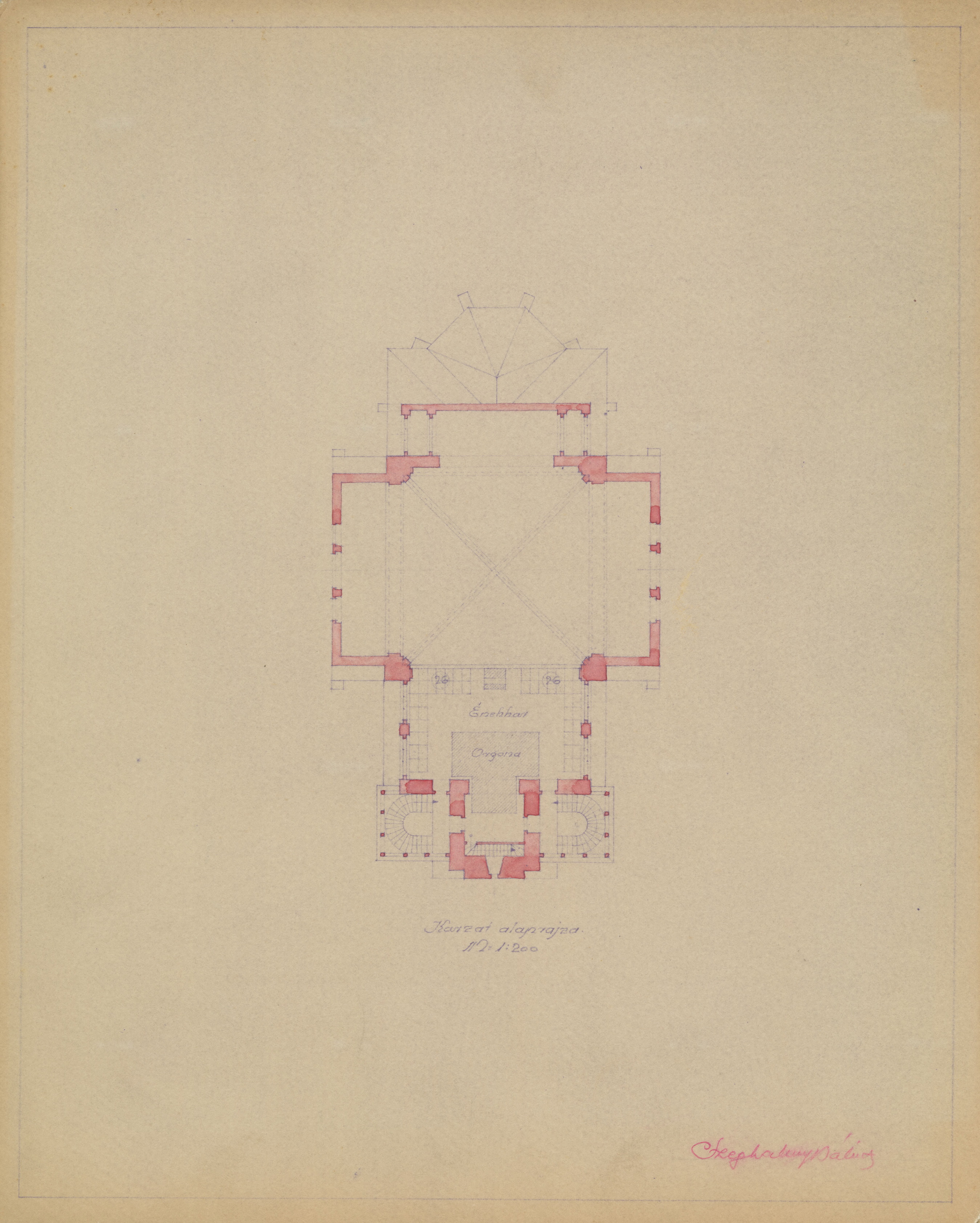 Győr-Nádorvárosi Evangélikus Templom, tervpályázatok 2016. március 5. Return to: Nádorvárosi evangélikus templomFull resolution (2698 × 3365) Image navigation Previous Image Next Image Az evangélikus egyházközösség templomának terve, alaprajz. Szeghalmy Bálint, feltehetően 1928-ból. (forrás: © Ráth Mátyás Evangélikus Gyűjtemény, Győr)
