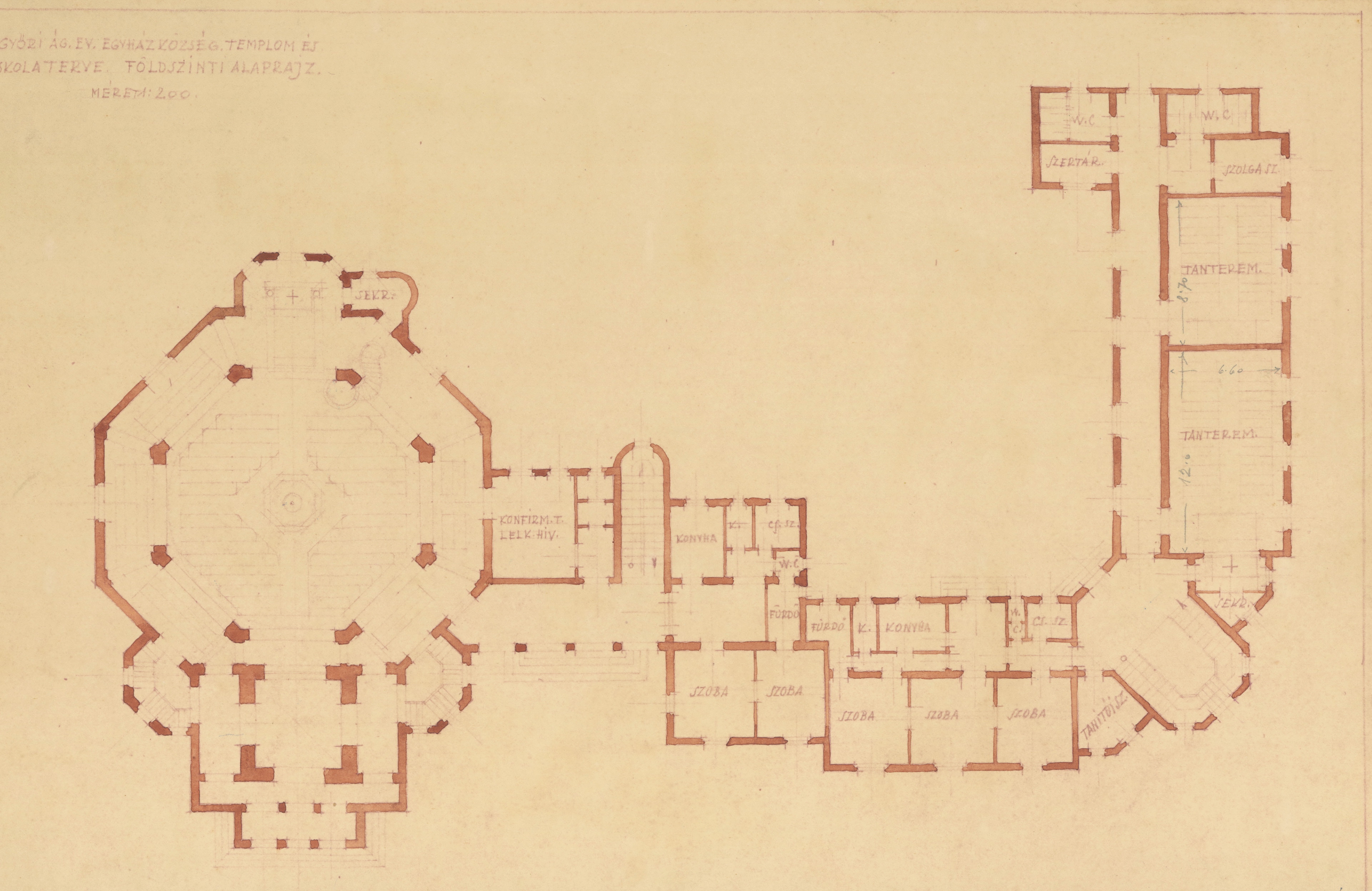 Győr-Nádorvárosi Evangélikus Templom, tervpályázatok 2016. március 5. Return to: Nádorvárosi evangélikus templomFull resolution (3842 × 2494) Image navigation Previous Image Next Image Az evangélikus egyházközösség templomának és iskolájának terve, emeleti alaprajz. Lakatos Kálmán, 1928. (forrás: © Ráth Mátyás Evangélikus Gyűjtemény, Győr)